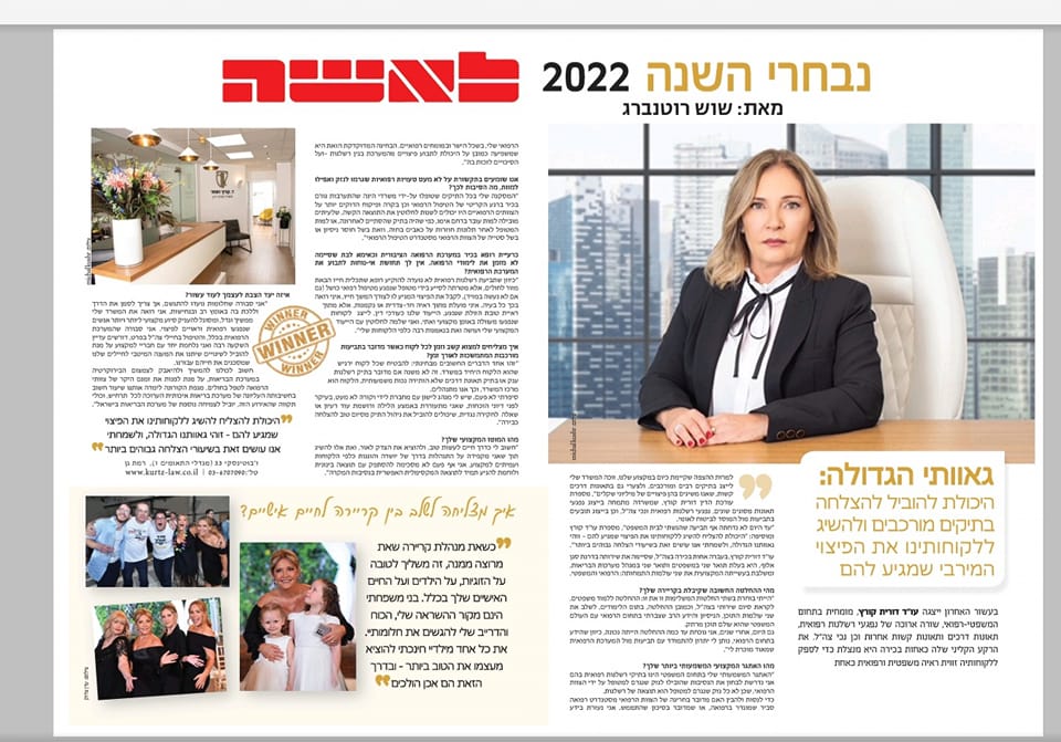 ראיון אישי ומקצועי עם עו"ד דורית קורץ שנבחרה לנבחרת השנה של מגזין "לאשה" לשנת 2022. בכתבה היא מספרת על השילוב