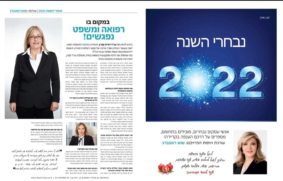 ראיון חגיגי במסגרת פרויקט "נבחרי השנה 2022", בו פורשת עו"ד קורץ את משנתה המקצועית המשלבת ידע רפואי ומשפטי ככלי עוצמתי